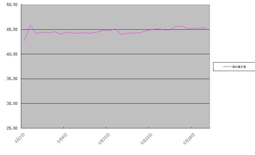 大帶魚(yú)、大黃花魚(yú)兩種海水魚(yú)批發(fā)均價(jià)為44.64元/公斤,環(huán)比上升4.3%,同比上升12.9%。
